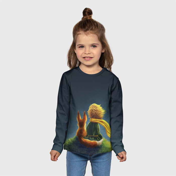 Детский лонгслив 3D с принтом Маленький принц с лисой