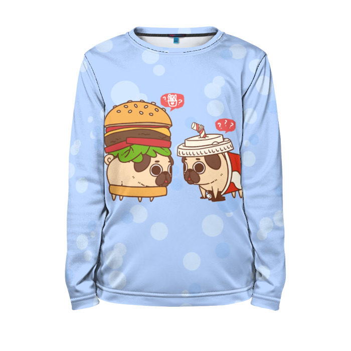 Детский лонгслив 3D с принтом Мопсы Обжоры
