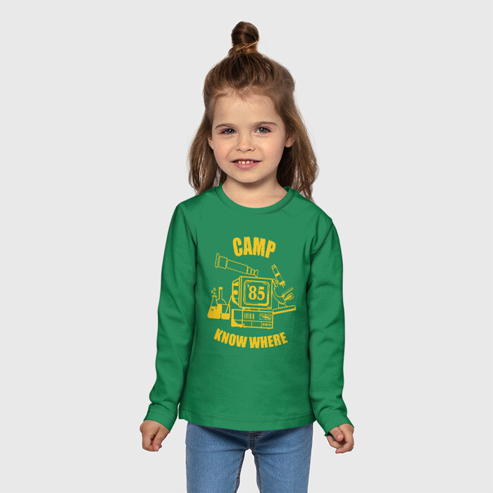 Детский лонгслив 3D с принтом CAMP KNOW WHERE