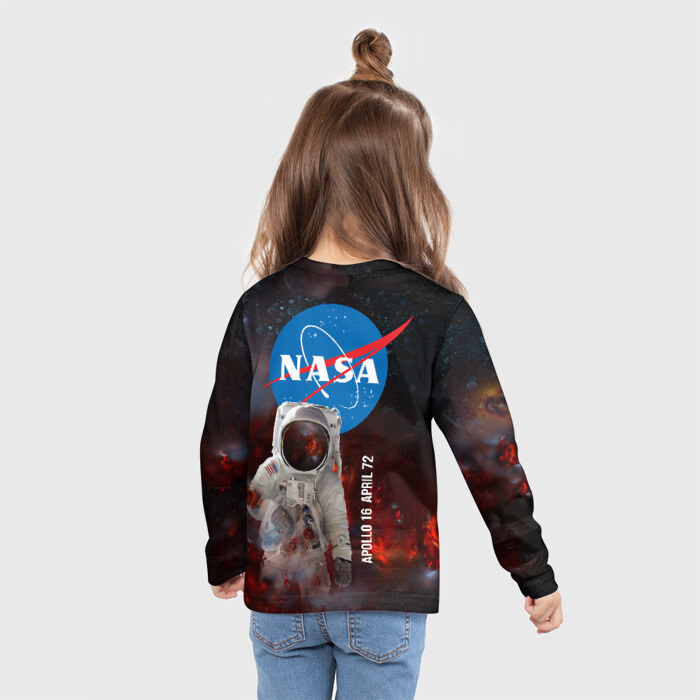 Детский лонгслив 3D с принтом Nasa Apollo 16