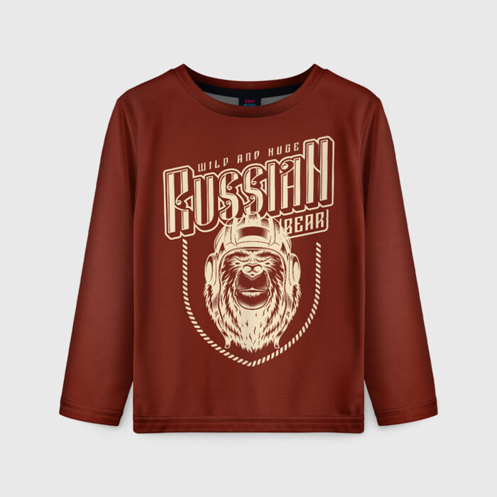 Детский лонгслив 3D Русский медведь танкист