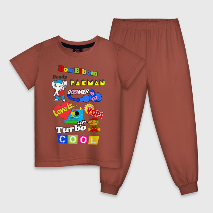 Пижама — домашняя одежда со свободным кроем, сделанная в соответствии с актуальными трендами. В такой одежде комфортно заниматься домашними делами и отдыхать, а также не стыдно выйти к гостям. Пара выполнена из мягкого дышащего хлопка одного цвета, а брюки сшиты из той же ткани, как и базовая хлопковая футболка . Принт наносится только на футболку.