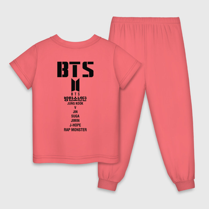 Детская пижама хлопок с принтом BTS (+ на спине)
