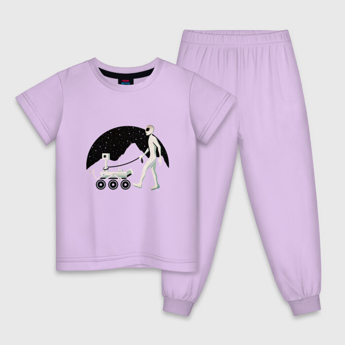 Пижама — домашняя одежда со свободным кроем, сделанная в соответствии с актуальными трендами. В такой одежде комфортно заниматься домашними делами и отдыхать, а также не стыдно выйти к гостям. Пара выполнена из мягкого дышащего хлопка одного цвета, а брюки сшиты из той же ткани, как и базовая хлопковая футболка . Принт наносится только на футболку.