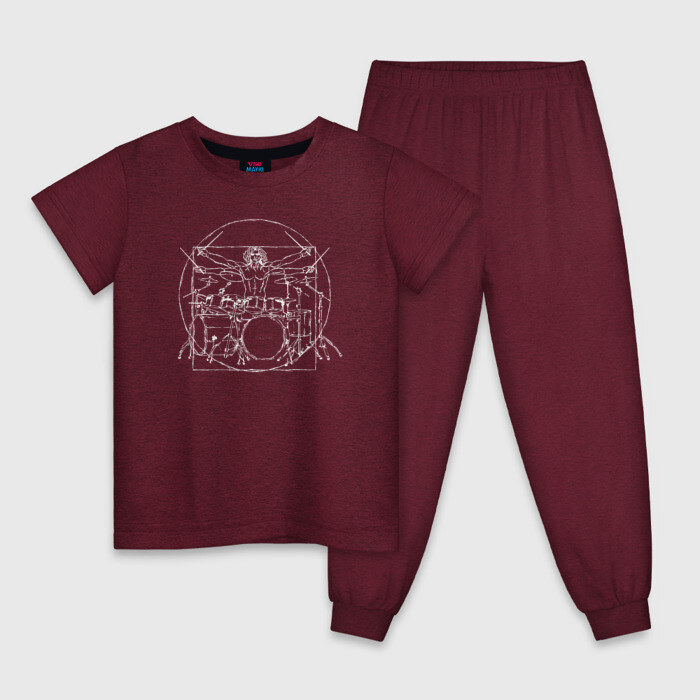 Детская пижама хлопок с принтом Витрувианский барабанщик 2