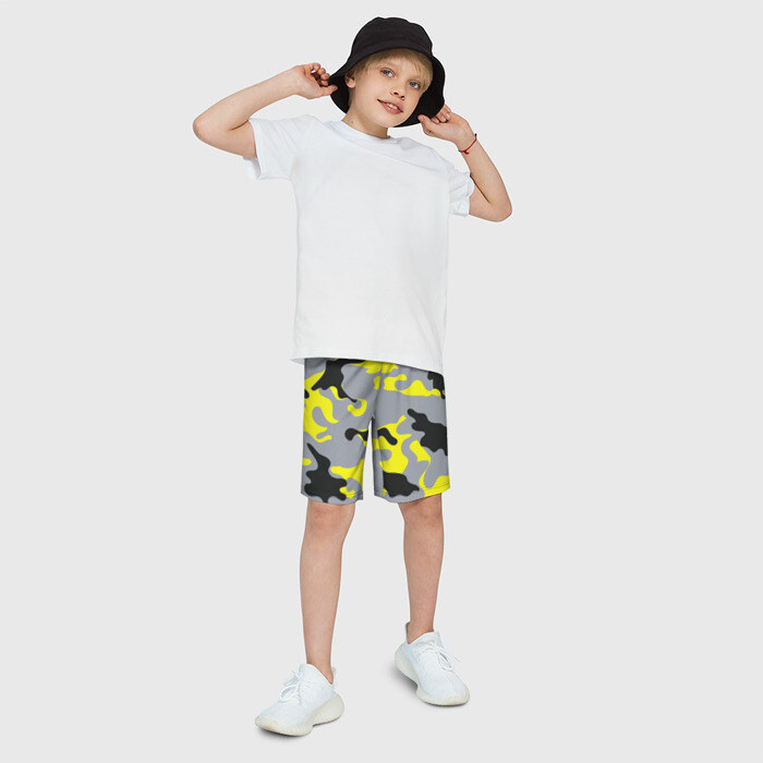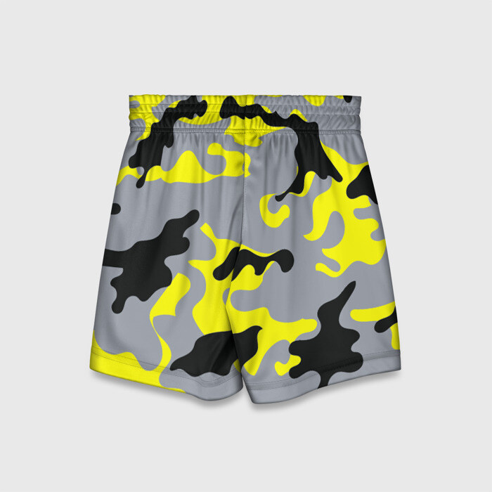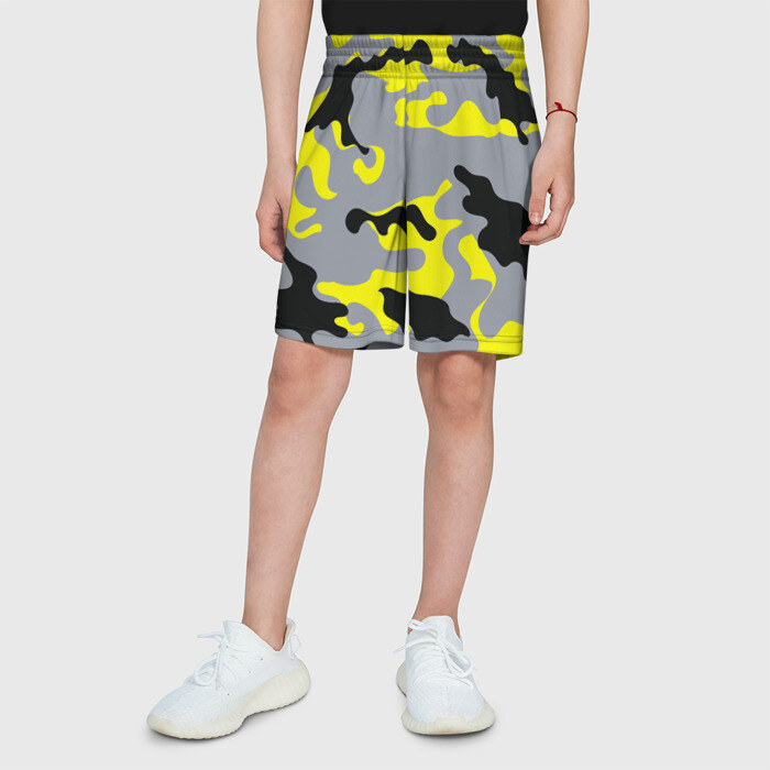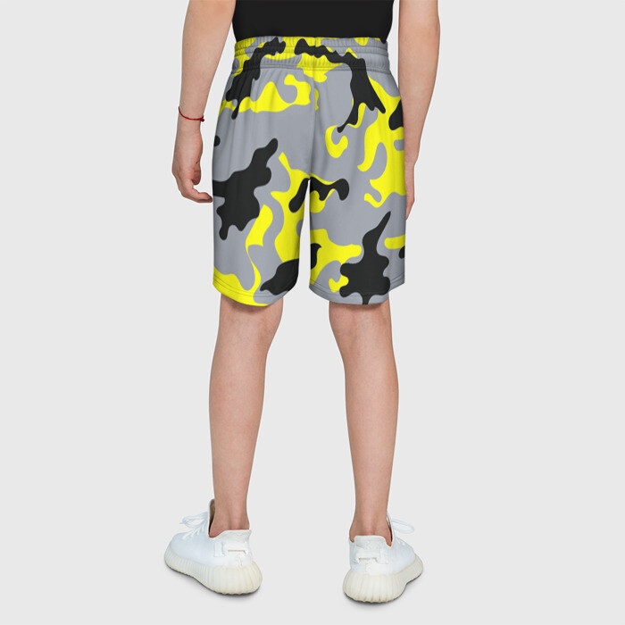 Детские спортивные шорты 3D с принтом Yellow camouflage