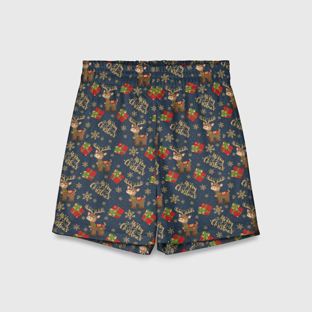 Детские спортивные шорты 3D с принтом Новогодние Олени