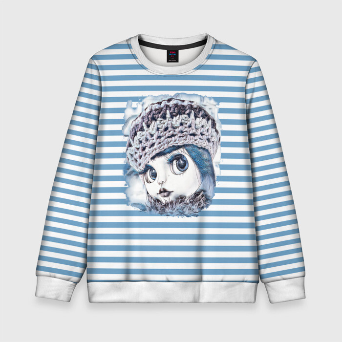 Детский свитшот 3D с принтом Любимая кукла на голубом фоне
