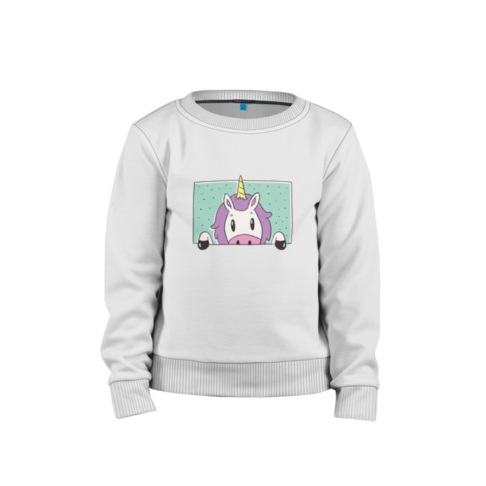 Детский свитшот хлопок с принтом Единорог заглядывает в окно