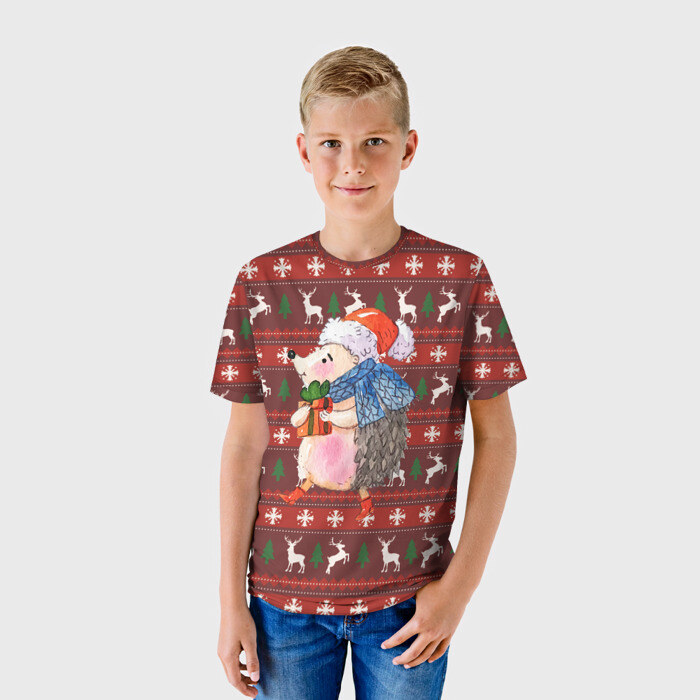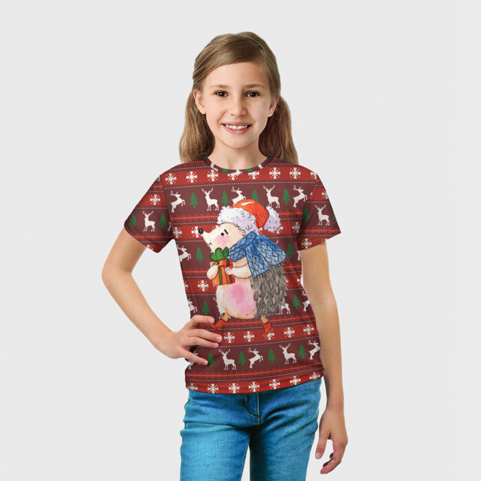 Детская футболка 3D с принтом милый ёжик с подарок новый год