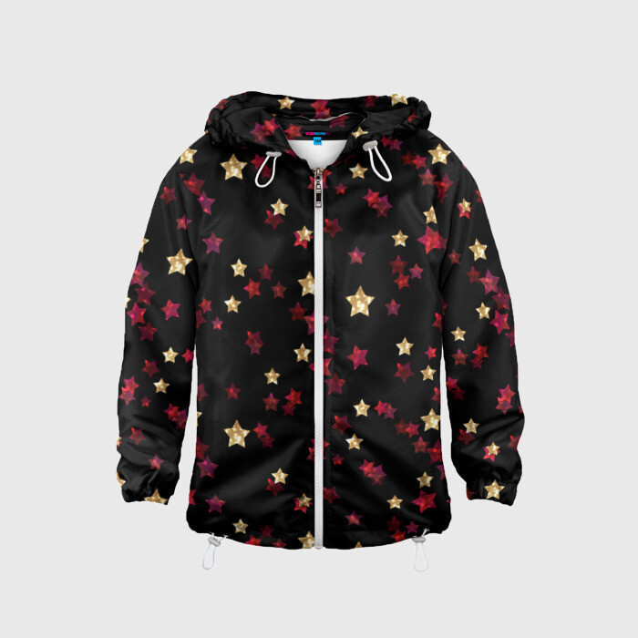 Детская ветровка 3D с принтом Блестящие звезды на черном