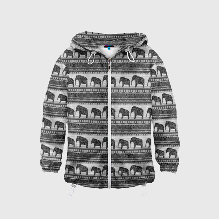 Детская ветровка 3D с принтом Черно-белый узор слоны