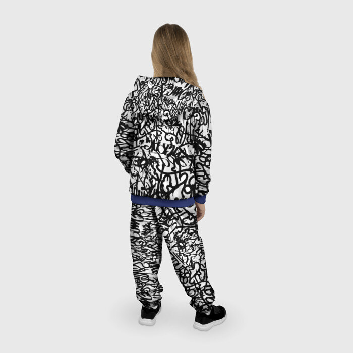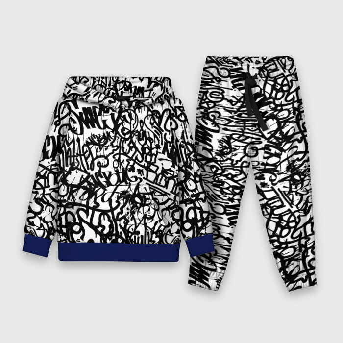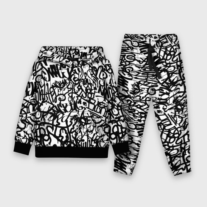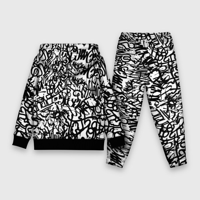 Детский костюм 3D (с толстовкой) Graffiti black on white