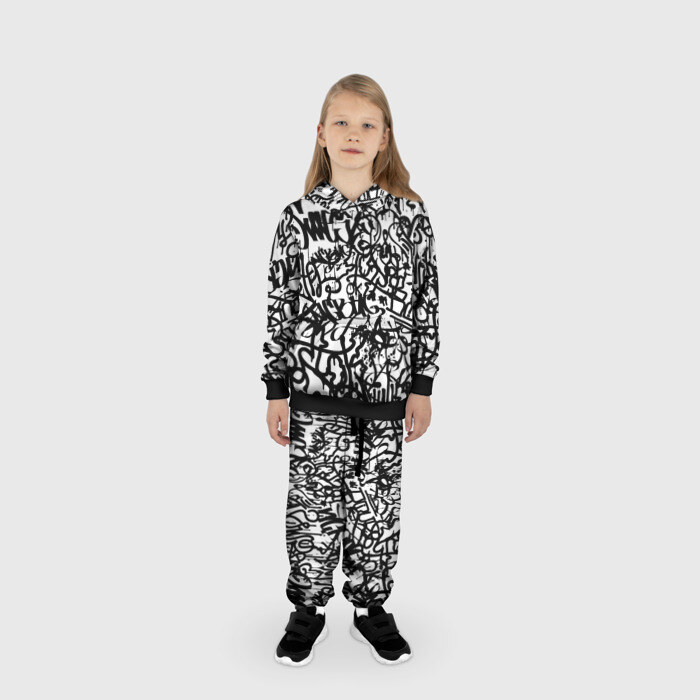 Детский костюм 3D (с толстовкой) GRAFFITI BLACK ON WHITE