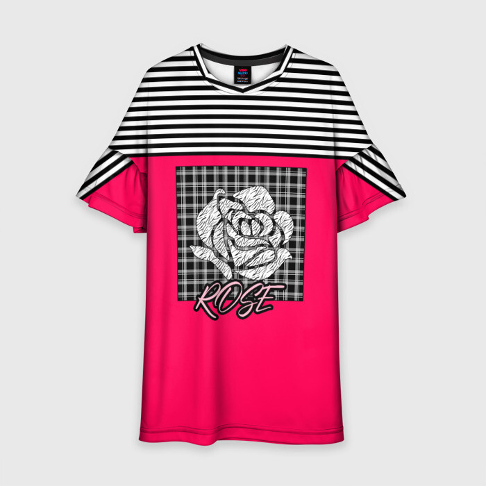 Детское платье 3D с принтом Аппликация роза на клетчатом
