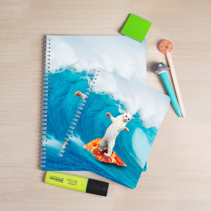 Тетрадь на спирали в двух размерах: стандартные А5 — такие нужны в школе, и большой формат А4 — размером с альбом. Есть тетради в клетку, линейку, с точками и в крупную клетку. Скругленные края листов и обложки защитят углы от преждевременного истирания и заломов. Такие тетради сделают школьную жизнь веселее, потому что теперь их можно купить с самыми разными принтами и даже со своим дизайном.