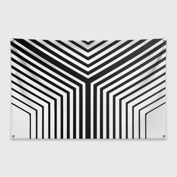 размер 67 х 109 см, плотность ткани — 95 г/м2; по краям флага есть четыре люверса для крепления