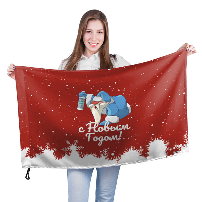 Флаг сделан из плотной синтетической ткани, с одной стороны которой наносится принт. За счет технологии нанесения изображение не выцветает под солнцем, не тускнеет от дождей и не выстирывается после сотен стирок. Можно заказать со своим дизайном.