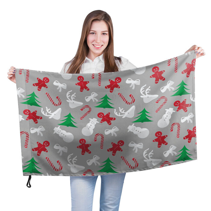 Флаг 3D с принтом Серый новогодний узор