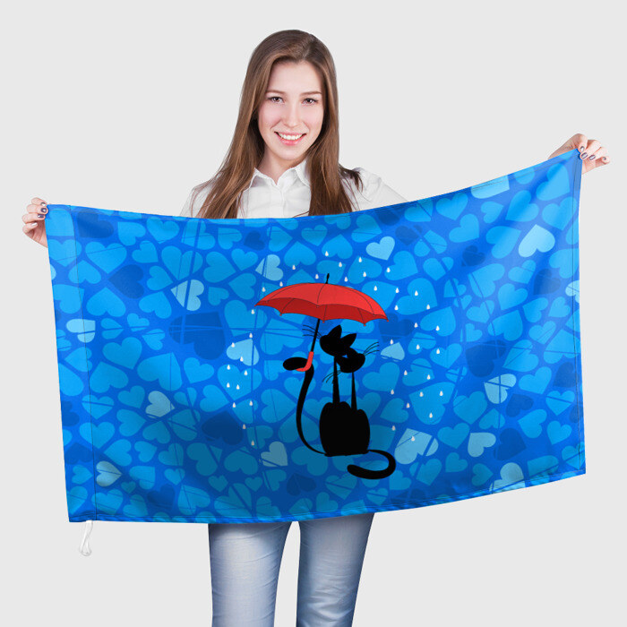 Флаг сделан из плотной синтетической ткани, с одной стороны которой наносится принт. За счет технологии нанесения изображение не выцветает под солнцем, не тускнеет от дождей и не выстирывается после сотен стирок. Можно заказать со своим дизайном.