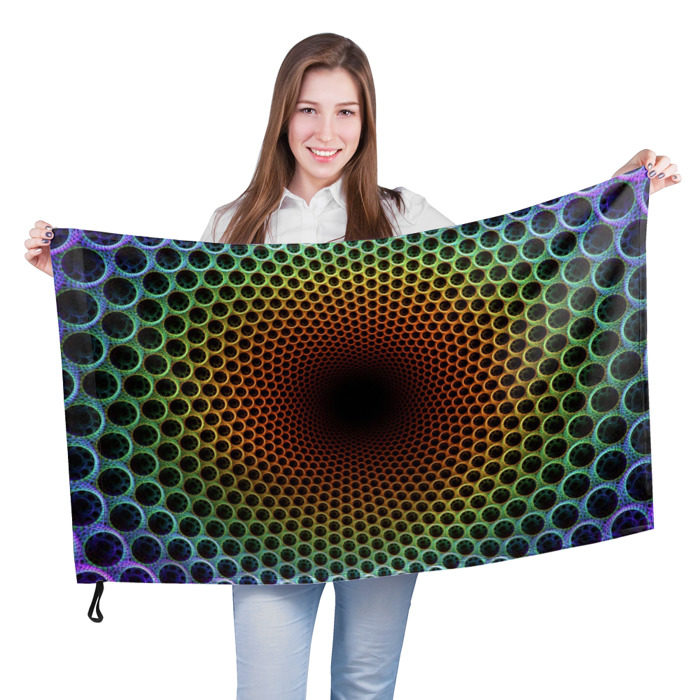 Флаг сделан из плотной синтетической ткани, с одной стороны которой наносится принт. За счет технологии нанесения изображение не выцветает под солнцем, не тускнеет от дождей и не выстирывается после сотен стирок. Можно заказать со своим дизайном.