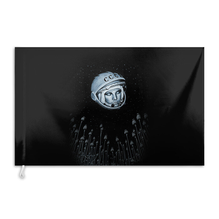 Флаг сделан из плотной синтетической ткани, с одной стороны которой наносится принт. За счет технологии нанесения изображение не выцветает под солнцем, не тускнеет от дождей и не выстирывается после сотен стирок. Можно заказать со своим дизайном.