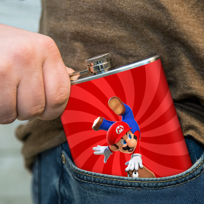 Металлическая фляжка с откручивающейся крышкой, которая имеет дополнительное крепление, так что не будет теряться. Принт наносится на специальную виниловую наклейку, которая покрывает боковые поверхности. Можно заказать со своим дизайном.