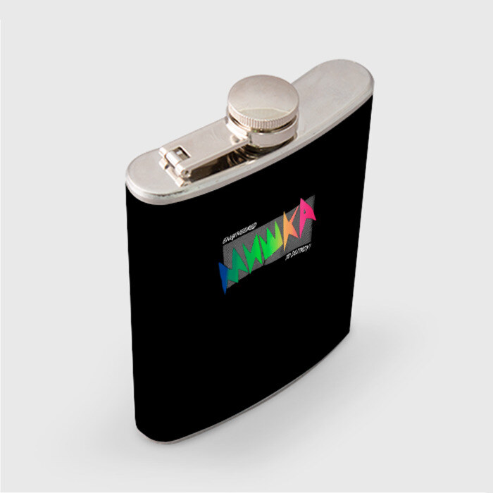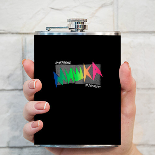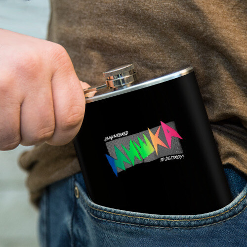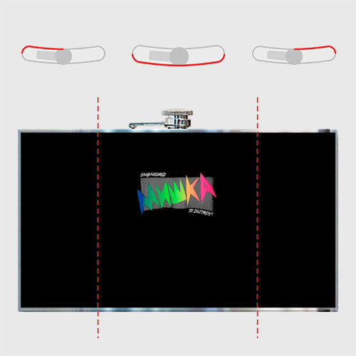 Металлическая фляжка с откручивающейся крышкой, которая имеет дополнительное крепление, так что не будет теряться. Принт наносится на специальную виниловую наклейку, которая покрывает боковые поверхности. Можно заказать со своим дизайном.