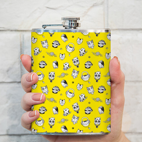 Металлическая фляжка с откручивающейся крышкой, которая имеет дополнительное крепление, так что не будет теряться. Принт наносится на специальную виниловую наклейку, которая покрывает боковые поверхности. Можно заказать со своим дизайном.