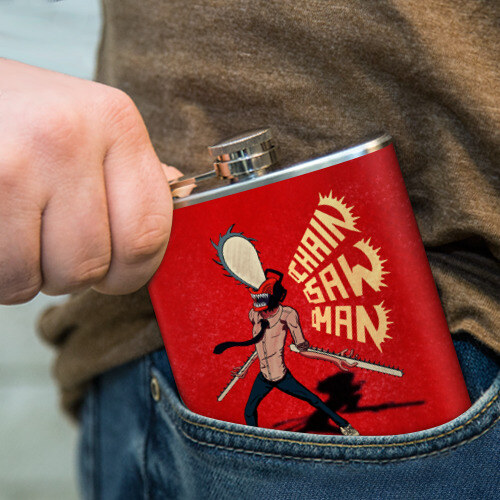 Фляга с принтом Человек Бензопила