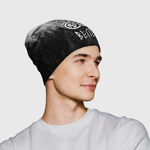 Шапка 3D с принтом ВЕЛЕС туманный лес