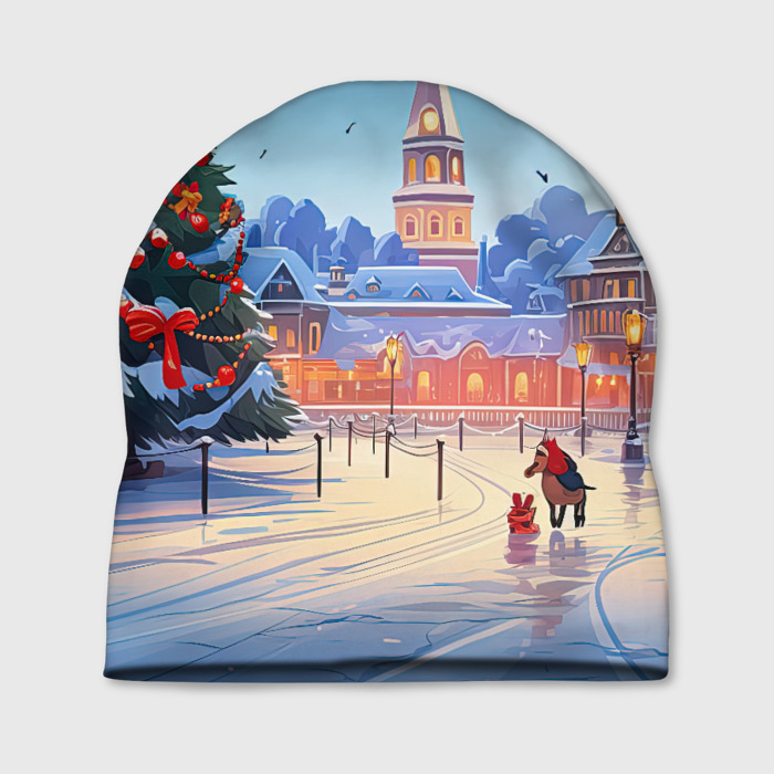 Шапка 3D с принтом Новогодняя площадь