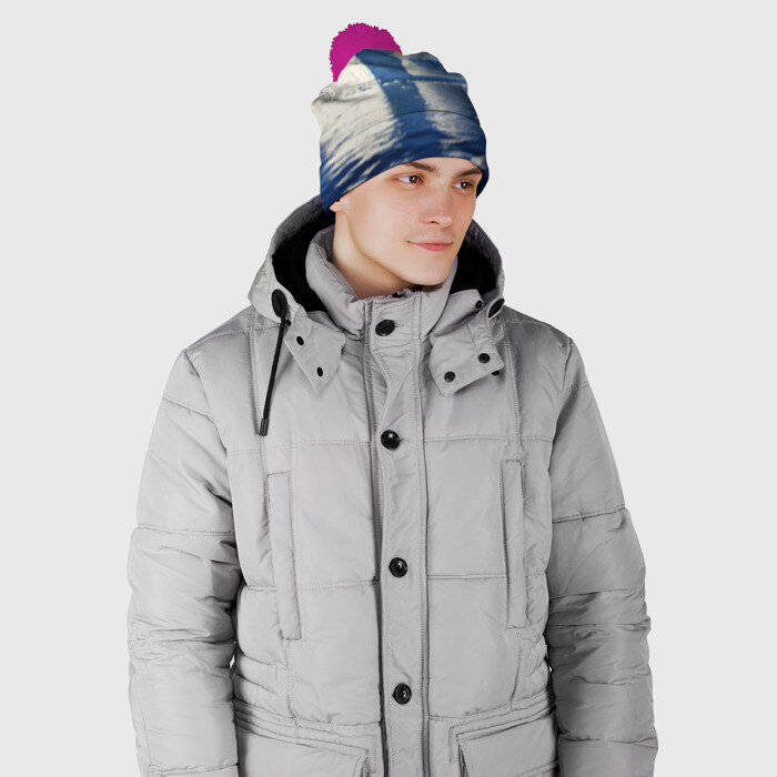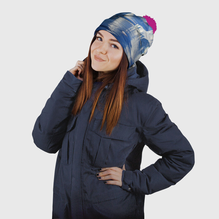 Шапка сшита из гладкой синтетической ткани, сверху крепится пушистый помпон. Двухслойная, между слоями спрятан тонкий теплый начес, за счет которого шапка согреет прохладной осенью и весной. Внутренний слой такой же гладкий и мягкий, как и внешний. Можно заказать шапку со своим рисунком.