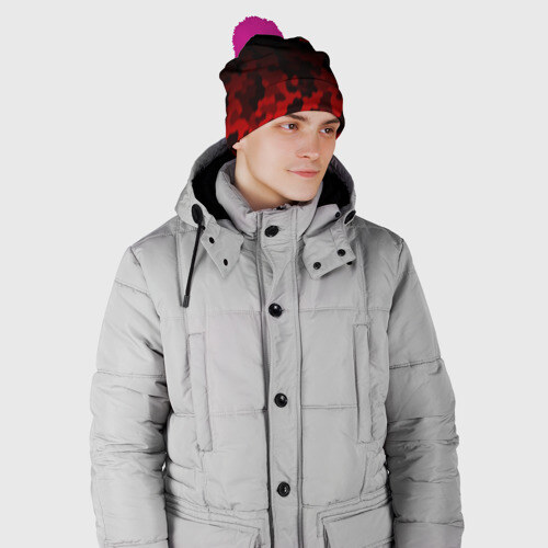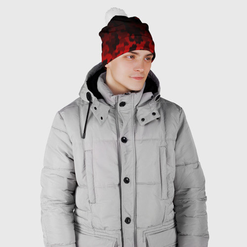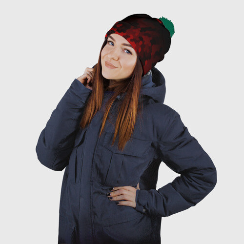 Шапка сшита из гладкой синтетической ткани, сверху крепится пушистый помпон. Двухслойная, между слоями спрятан тонкий теплый начес, за счет которого шапка согреет прохладной осенью и весной. Внутренний слой такой же гладкий и мягкий, как и внешний. Можно заказать шапку со своим рисунком.