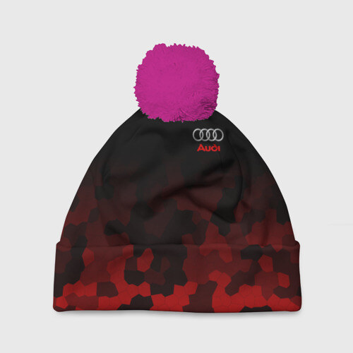 Шапка 3D c помпоном с принтом AUDI SPORT