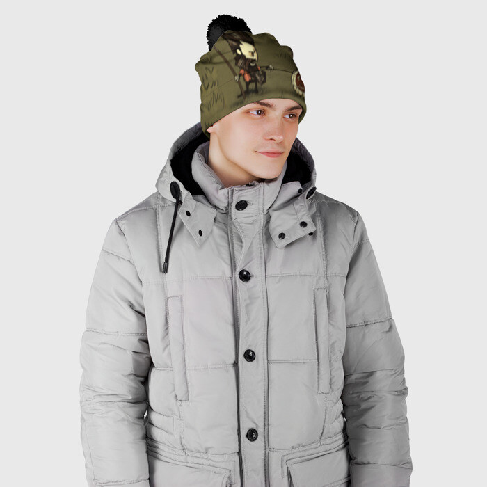 Шапка сшита из гладкой синтетической ткани, сверху крепится пушистый помпон. Двухслойная, между слоями спрятан тонкий теплый начес, за счет которого шапка согреет прохладной осенью и весной. Внутренний слой такой же гладкий и мягкий, как и внешний. Можно заказать шапку со своим рисунком.