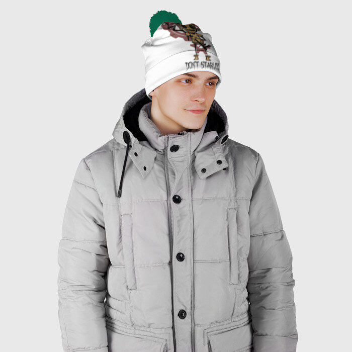 Шапка сшита из гладкой синтетической ткани, сверху крепится пушистый помпон. Двухслойная, между слоями спрятан тонкий теплый начес, за счет которого шапка согреет прохладной осенью и весной. Внутренний слой такой же гладкий и мягкий, как и внешний. Можно заказать шапку со своим рисунком.