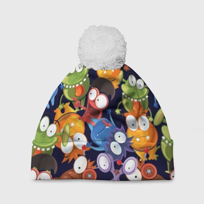 Шапка 3D c помпоном с принтом Пучеглазые монстры
