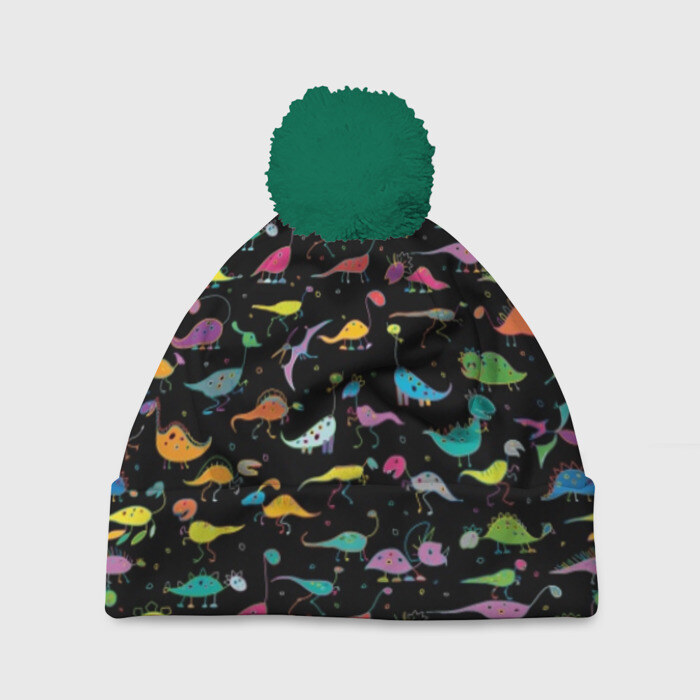 Шапка 3D c помпоном с принтом Светящиеся динозавры