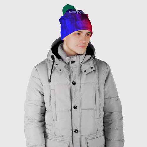 Шапка 3D c помпоном с принтом CS GO FIRE