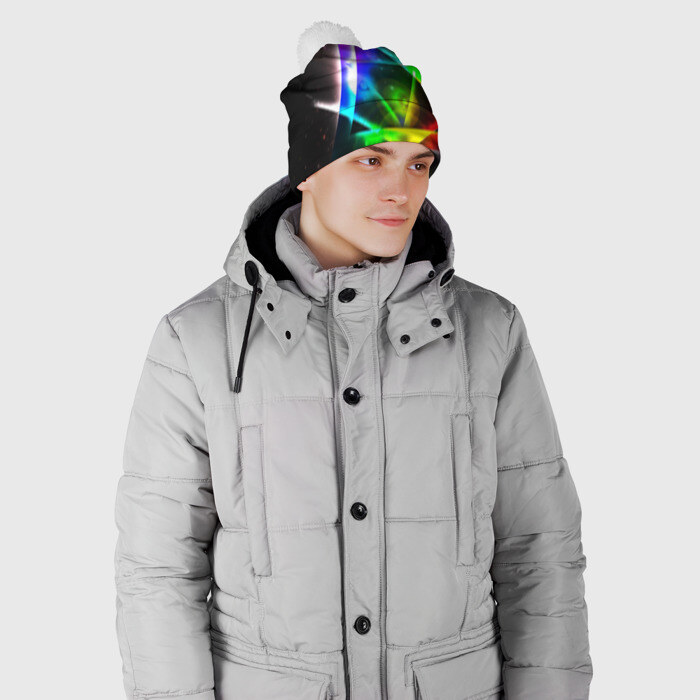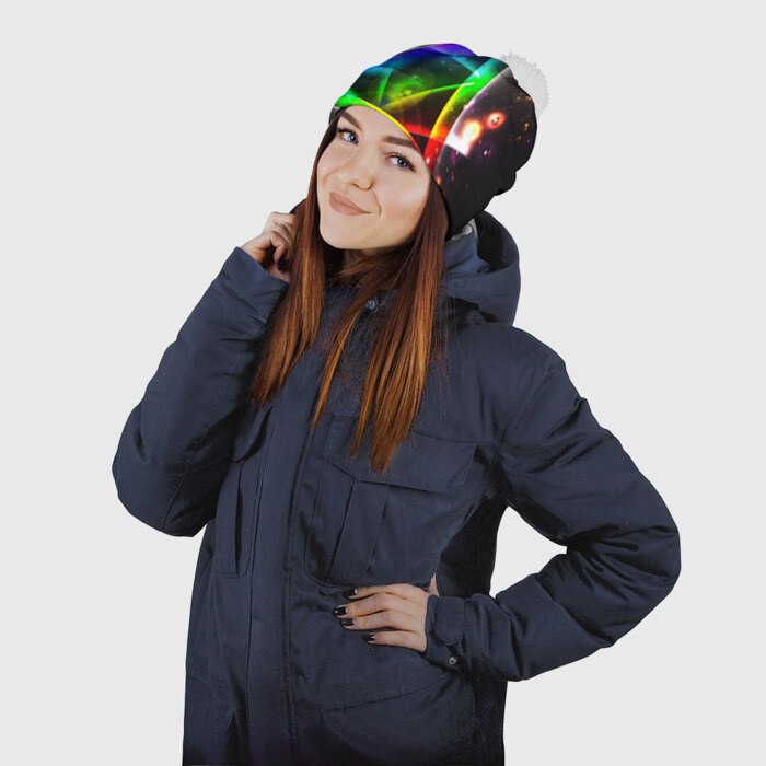 Шапка 3D c помпоном с принтом ИЛЛЮМИНАТЫ