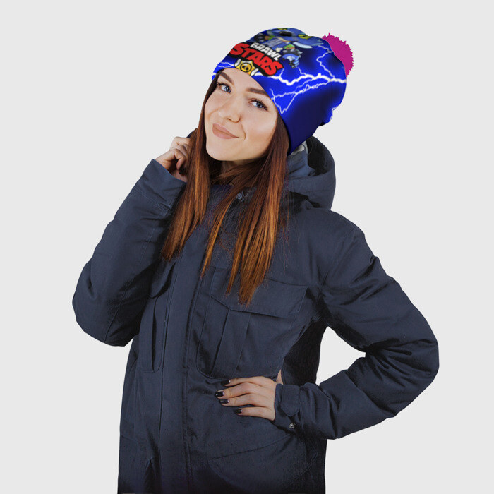 Шапка 3D c помпоном с принтом BRAWL STARS LEON