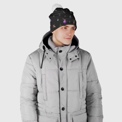 Шапка сшита из гладкой синтетической ткани, сверху крепится пушистый помпон. Двухслойная, между слоями спрятан тонкий теплый начес, за счет которого шапка согреет прохладной осенью и весной. Внутренний слой такой же гладкий и мягкий, как и внешний. Можно заказать шапку со своим рисунком.