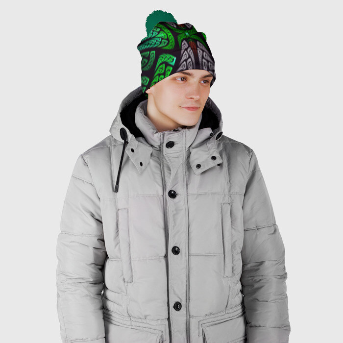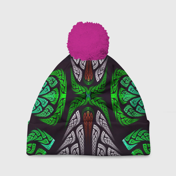 Шапка сшита из гладкой синтетической ткани, сверху крепится пушистый помпон. Двухслойная, между слоями спрятан тонкий теплый начес, за счет которого шапка согреет прохладной осенью и весной. Внутренний слой такой же гладкий и мягкий, как и внешний. Можно заказать шапку со своим рисунком.