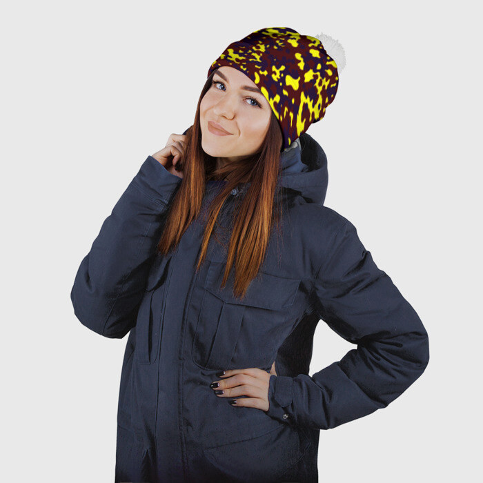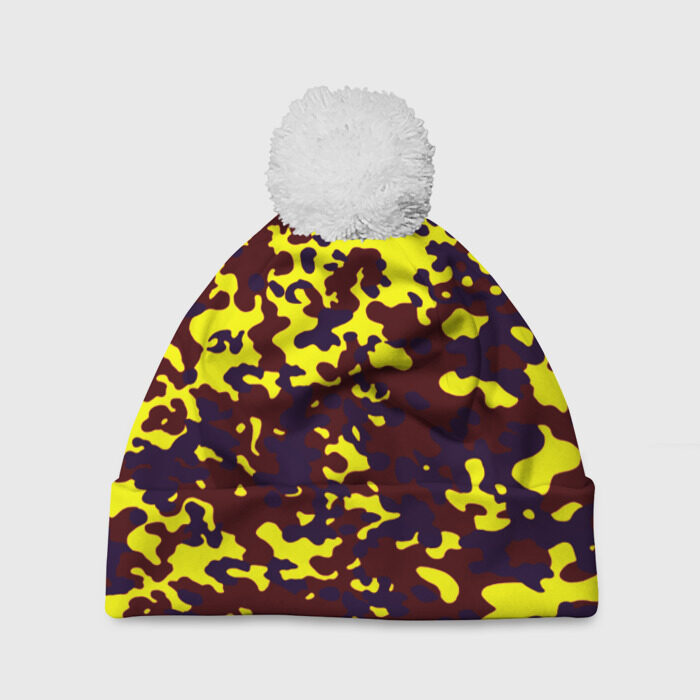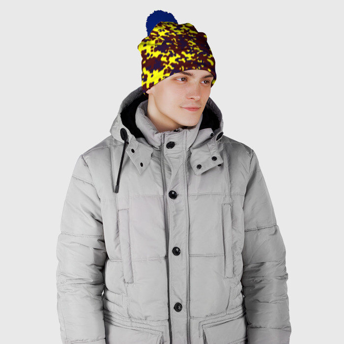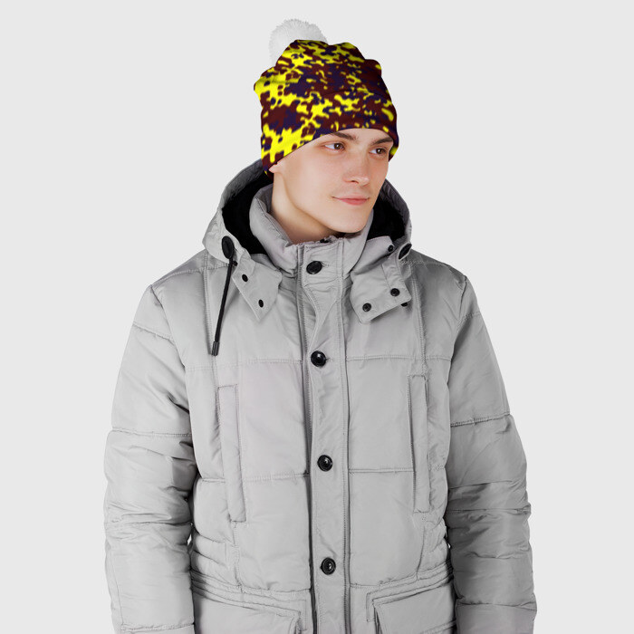 Шапка 3D c помпоном с принтом Полевой(пиксели)