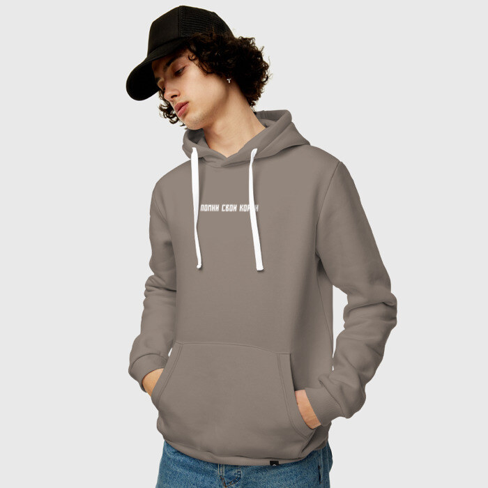 Базовая толстовка унисекс из хлопка с мягким и теплым начесом внутри. Капюшон регулируется шнурком, спереди большой карман. Можно заказать со своим принтом или вообще без него.