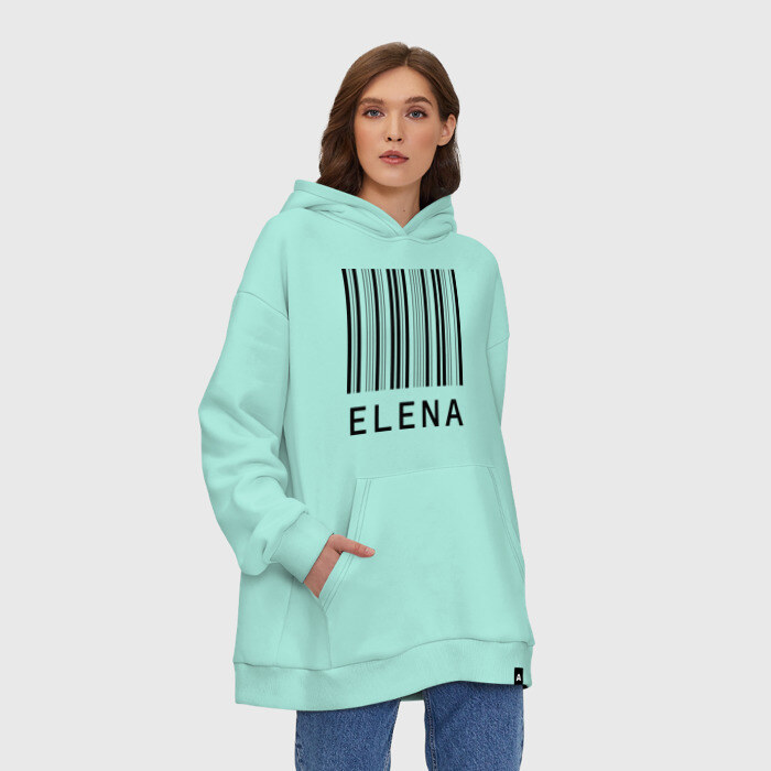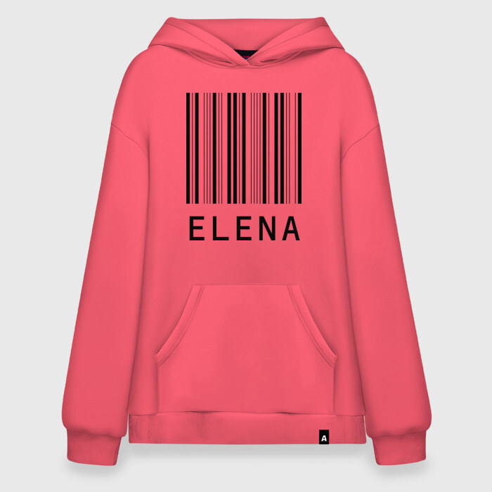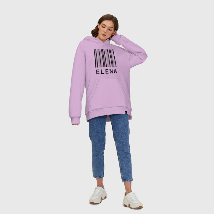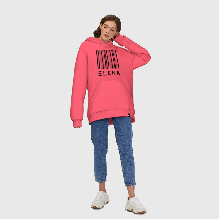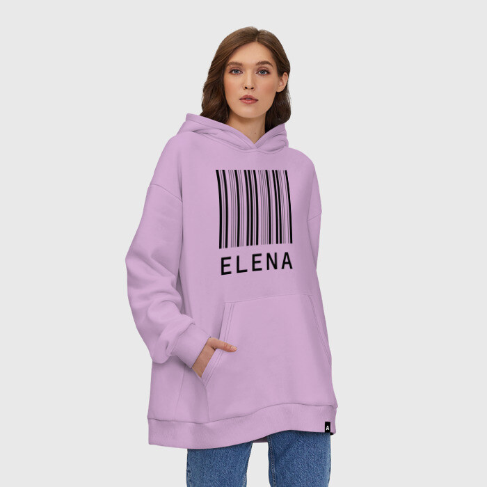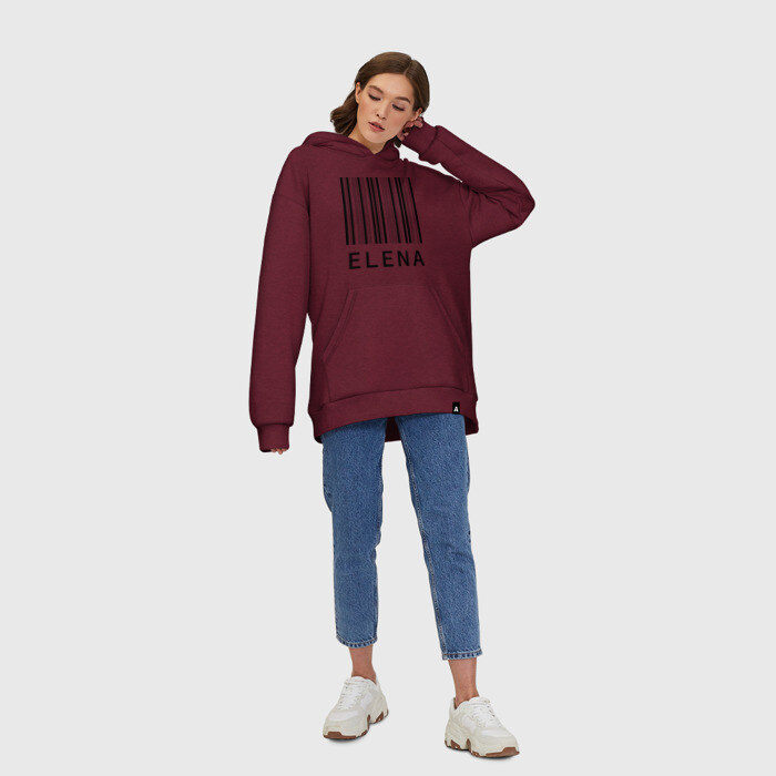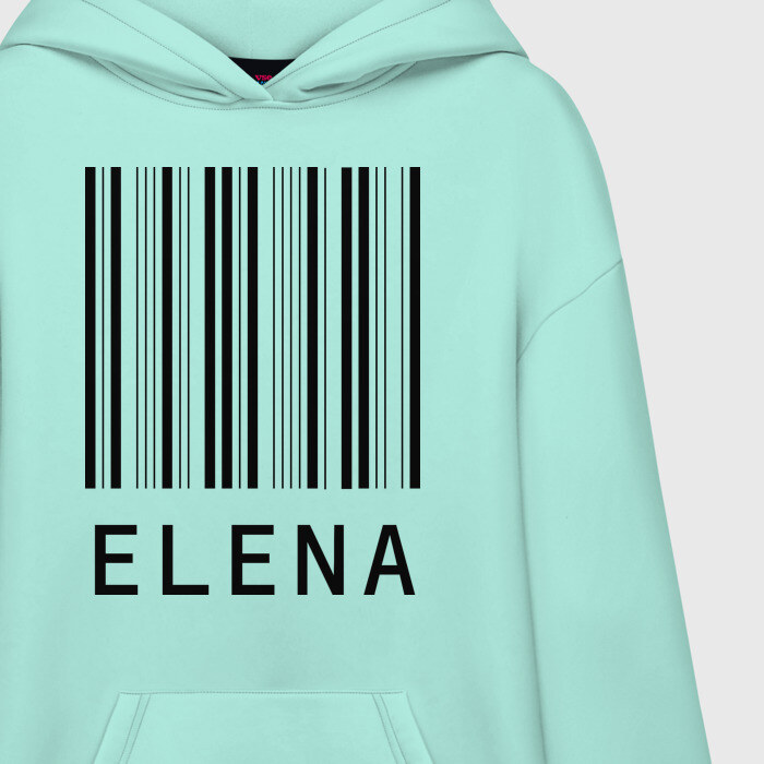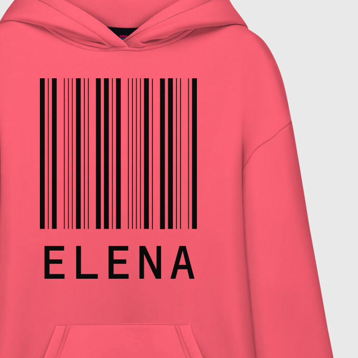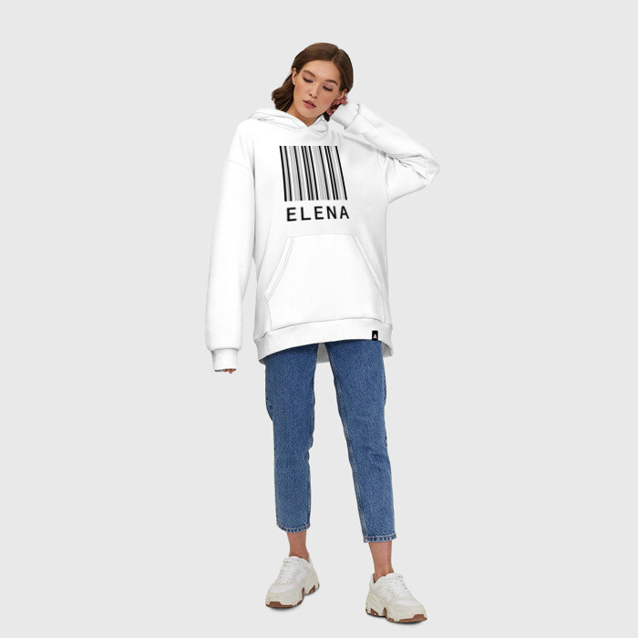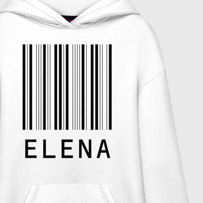 Худи SuperOversize хлопок с принтом Елена (штрихкод)