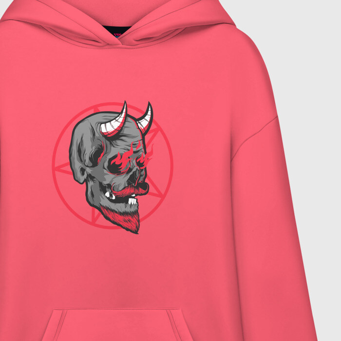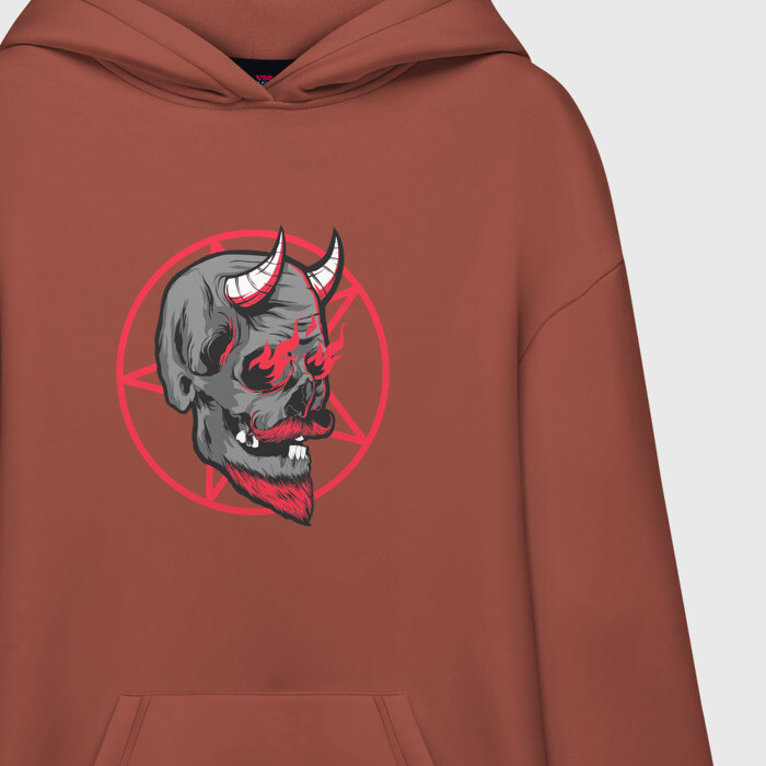 Худи SuperOversize хлопок Череп с рогами и бородой 666