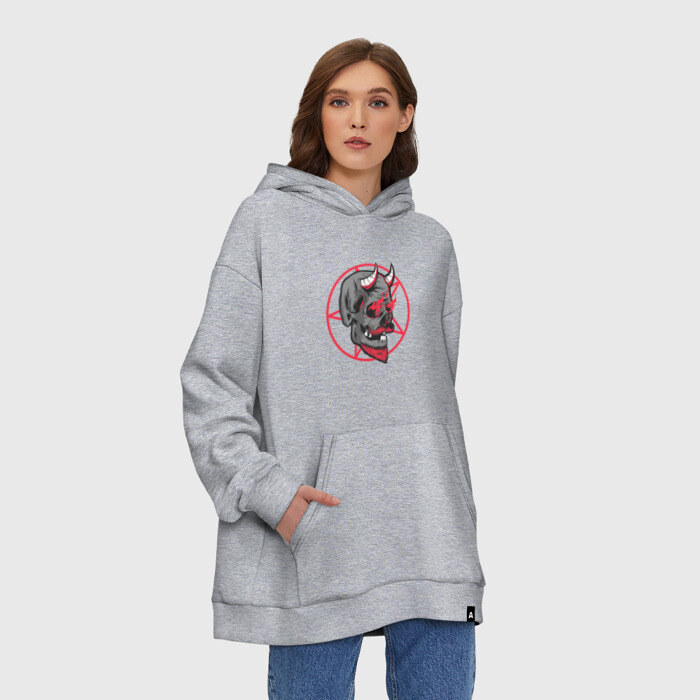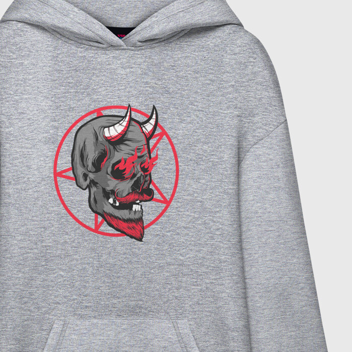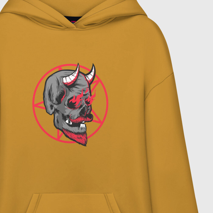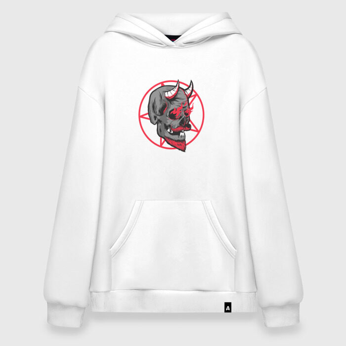 Худи SuperOversize хлопок с принтом Череп с рогами и бородой 666