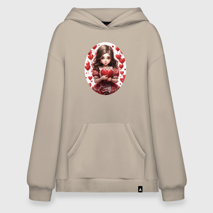 Худи SuperOversize хлопок с принтом Девочка валентинка в красном